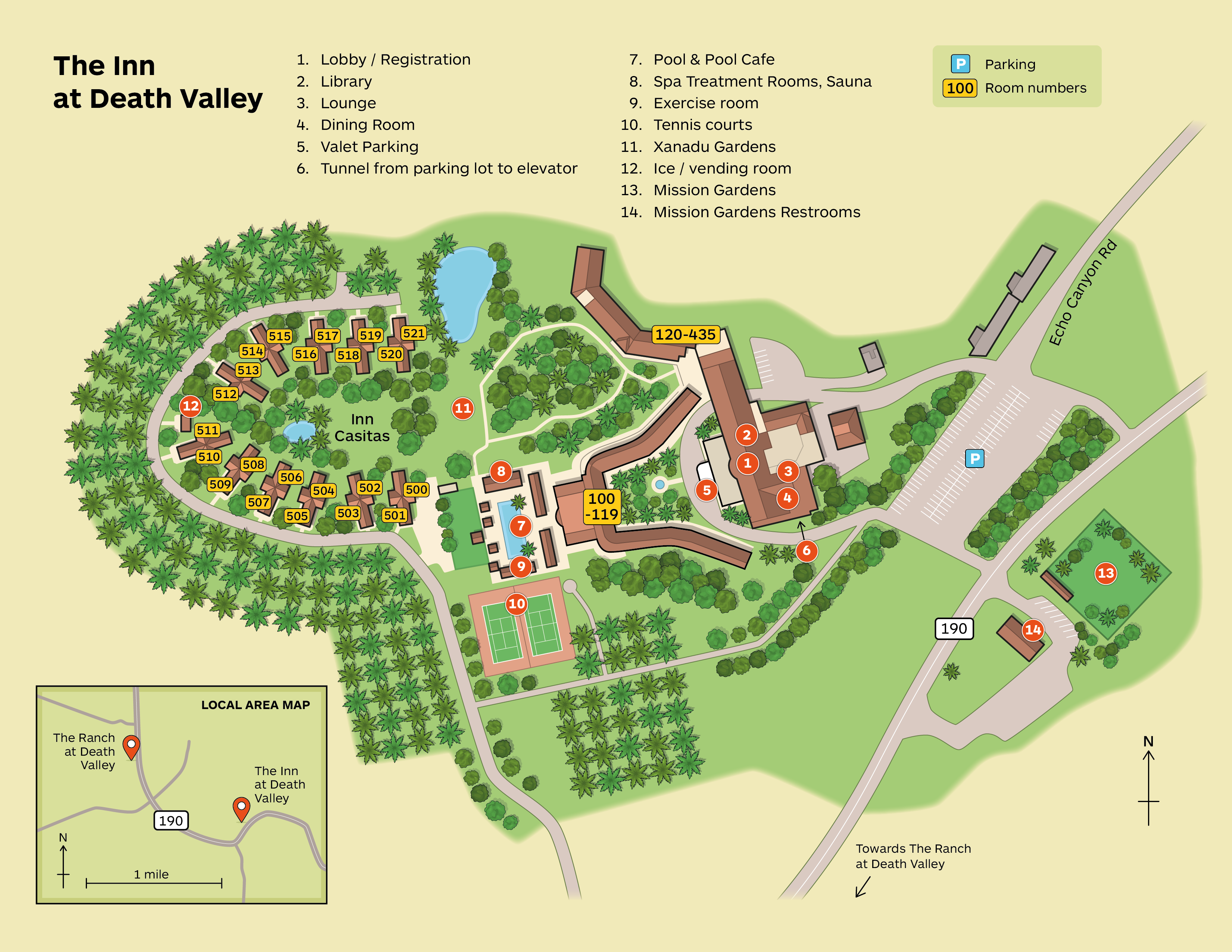 Roll up the landscaped drive and enjoy the expansive view of Death Valley National Park, the towering date palms and bubbling fountain that springs forth from the natural oasis. What was once only hardscape has been transformed into a lush and inviting experience.