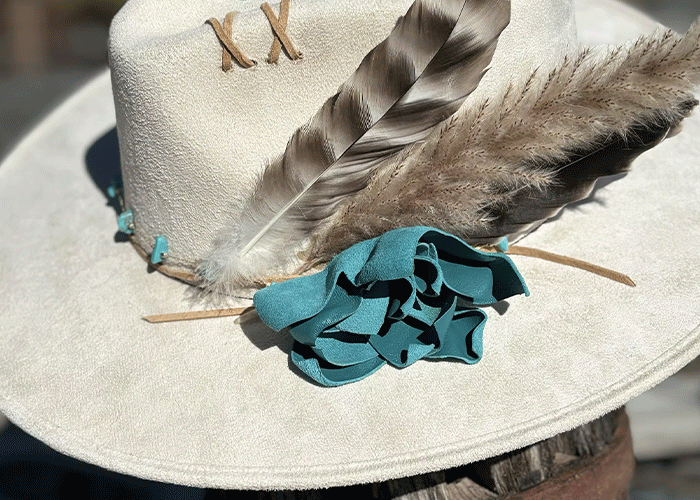 Petals & Hide was born out of a friendship and shared passion for creativity. Co-owners Kate and Iolanda Met in 2013 in a local running group, though neither of them still run, they have stayed close friends ever since. In the last year Kate started to experiment with creating leather flower hat bands and dabbling in hat burning. Then one day, Iolanda, with her experience running another small business, had a bold idea: Why not open a hat bar? That simple suggestion turned into Petals & Hide—a place where creativity, style, and connection come together. Their mission is to offer a unique experience where anyone can design a statement piece that truly represents them.