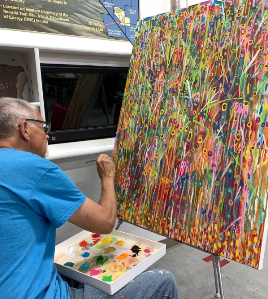 Bruce Horvath’s artistic journey began in San Rafael, Northern California, where he first picked up a sketch pad. In the early 1970s, his organ teacher Jeane Noble, an accomplished oil painter, invited him to join her painting classes. After a few lessons, Horvath switched to acrylics and has painted exclusively in this medium for over 50 years. His artistic path took him from studying California’s golden hills and majestic redwoods to Orange County, and finally to retirement in Pahrump, Nevada — a desert town between Las Vegas and Death Valley that offers completely different landscape experiences. Horvath enjoys painting in various styles from realistic to abstract, employing tools ranging from small brushes to palette knives. He finds that painting transports him from life’s bustle into the calm of creation.